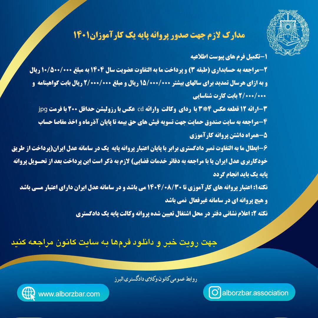 🔹مدارک لازم جهت صدور پروانه پایه یک کارآموزان 1401